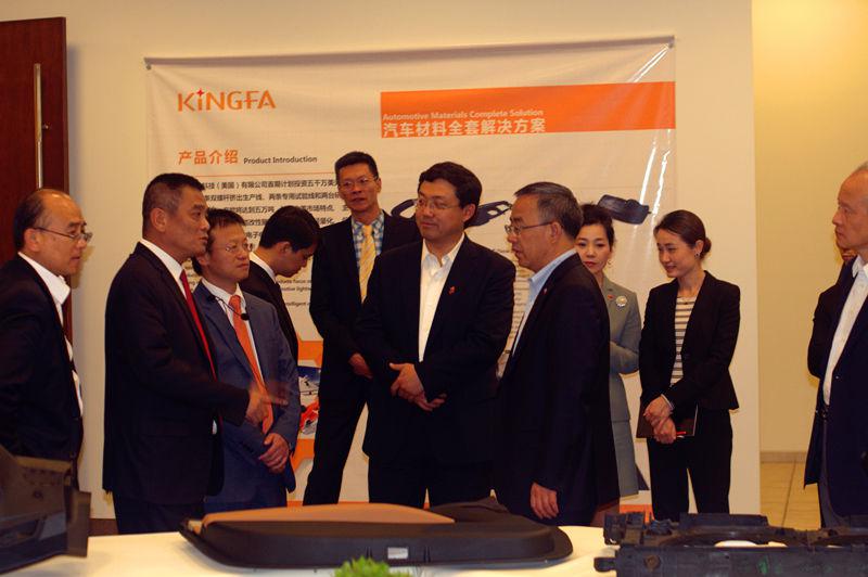 胡春华书记仔细听取了美国金发公司的建设发展情况介绍,细致查看了美国金发的产品展示,参观了生产车间和实验室,详细了解了美国金发的产品应用领域和未来发展规划,并与美国金发团队座谈交流。